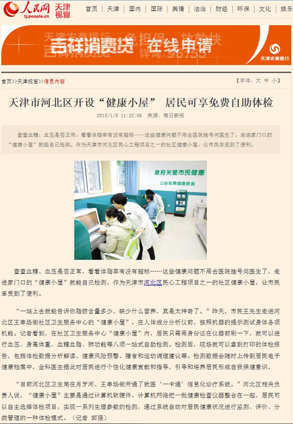 天津市河北區(qū)開設(shè)"健康小屋"居民可享受免費自助體檢